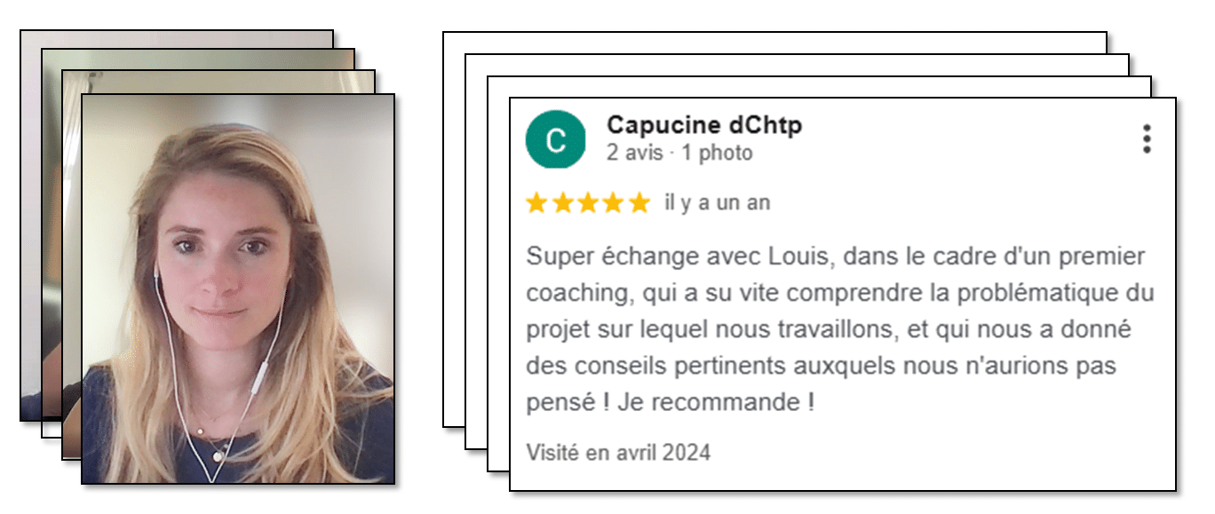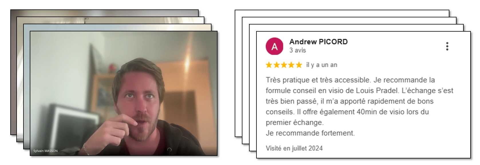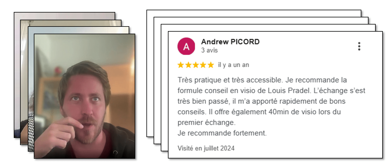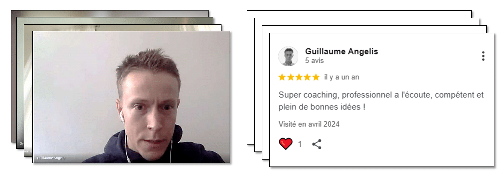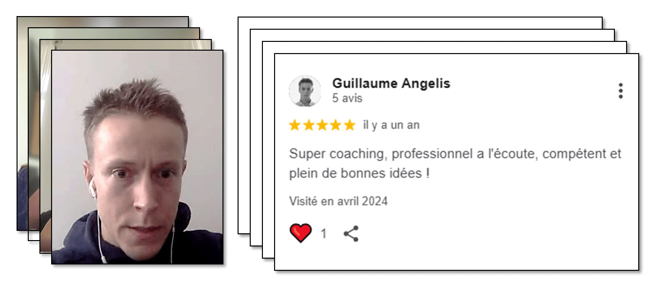 Satisfaction historique : avis Google Maps et commentaires YouTube très positifs. Pas de risque de hors sujet : si votre problématique n’est pas adaptée au coaching, il est annulé sans frais.
