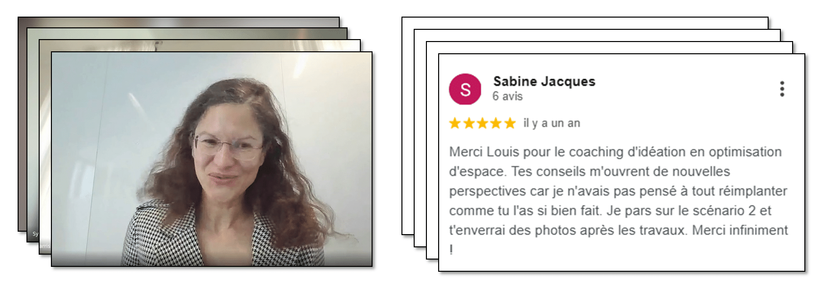 Recevrai-je des documents après ? Lors de la visio, vous pouvez faire des captures d’écran des croquis, des ressources, des vidéos ou des articles. À la fin du coaching, vous aurez une liste de tâches concrètes. Il n’y a pas de document remis, afin que l’heure de conseil soit 100 % dédiée à l’expertise et non à la mise en page.